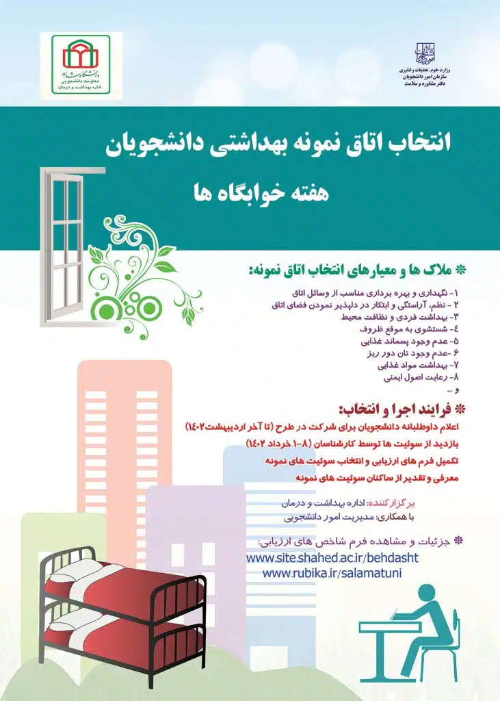 انتخاب سوئیت نمونه بهداشتی خوابگاه ها در سال 1402