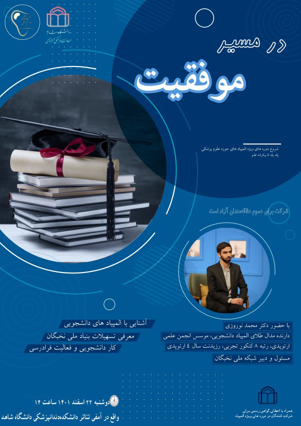 به گزارش «روابط عمومی» دانشگاه، نشست علمی در مسیر موفقیت، به همت انجمن علمی دندانپزشکی دانشگاه، دوشنبه 22 اسفند ماه 1401 ساعت 14 در آمفی تئاتر دانشکده دندانپزشکی برگزار میگردد.