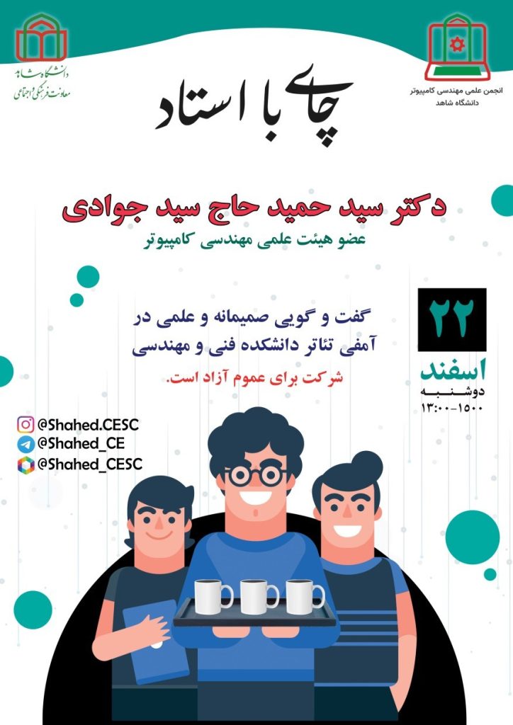 به گزارش «روابط عمومی» دانشگاه و به همت انجمن علمی مهندسی کامپیوتر، گفتگوی صمیمانه وعلمی با محوریت انتقال تجربه،  با حضور دکتر سید حمید حاج سید جوادی عضو هیات علمی گروه مهندسی کامپیوتر،  دوشنبه  ۲۲ اسفند ماه ۱۴۰۱ از  ساعت ۱۳ الی ۱۵ در آمفی تئاتر دانشکده فنی و مهندسی برگزار می‌گردد.