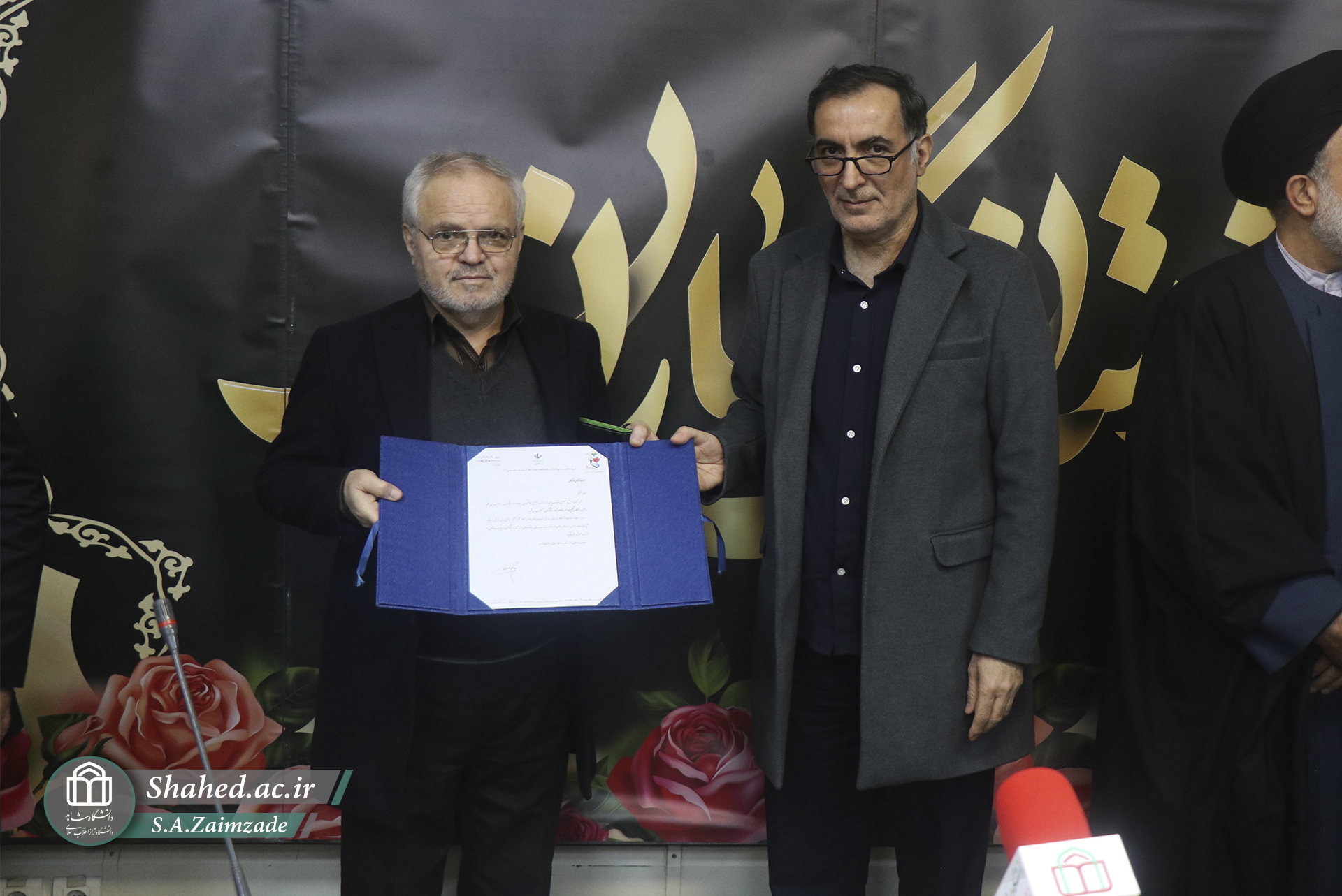 در پایان این جلسه، حکم ریاست جناب آقای دکتر حمیدرضا بخشی در دانشگاه شاهد که با امضای جناب آقای دکتر مسعود پزشکیان، رئیسجمهور محترم، صادر شده بود، توسط جناب آقای دکتر میراحمد موسوی، معاون محترم رئیسجمهور و رئیس بنیاد شهید و امور ایثارگران، به ایشان تقدیم شد.