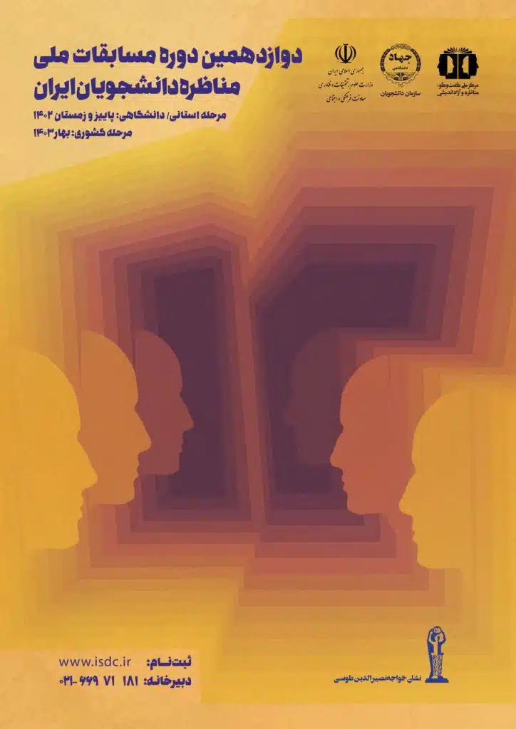 بنابر گزارش روابط عمومی، دوازدهمین دوره مسابقات ملی مناظره دانشجویان ایران برگزار میگردد. دانشجویان جهت ثبت نام به وب سایت www.isdc.ir مراجعه نمایند.