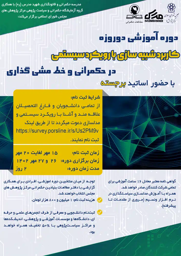 دوره آموزشی کوتاه مدت «کاربرد شبیه سازی با رویکرد سیستمی در حکمرانی و خط مشی گذاری»