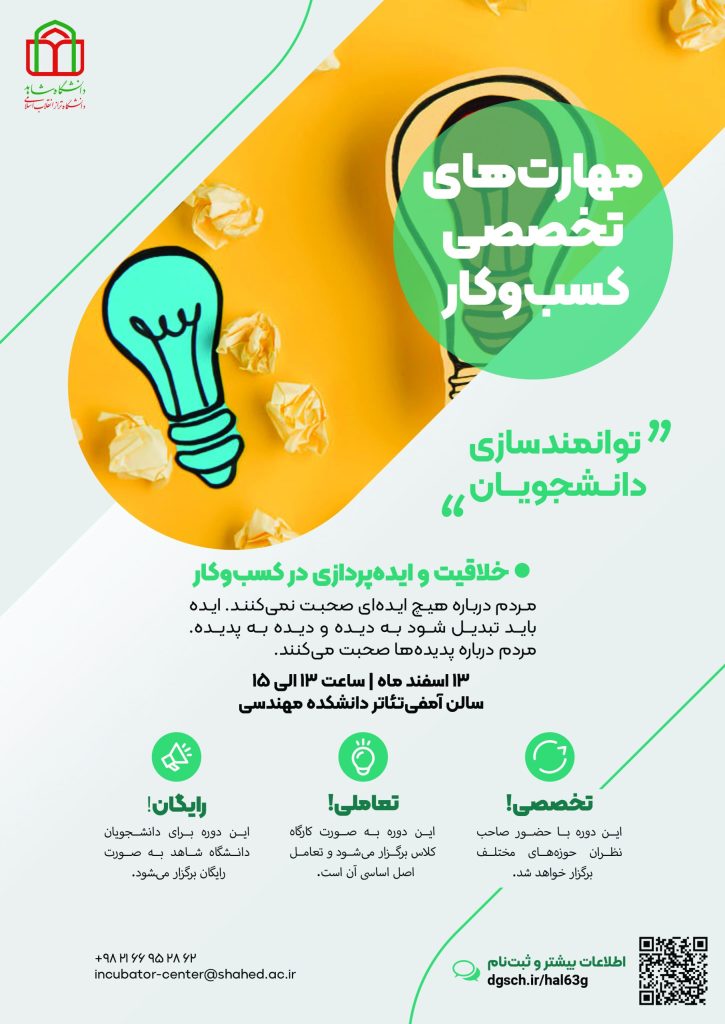 سلسله نشستهای توانمندی سازی دانشجویان در حوزه کسب و کار اولین نشست با موضوع “خلاقیت و ایده پردازی در کسب و کار”