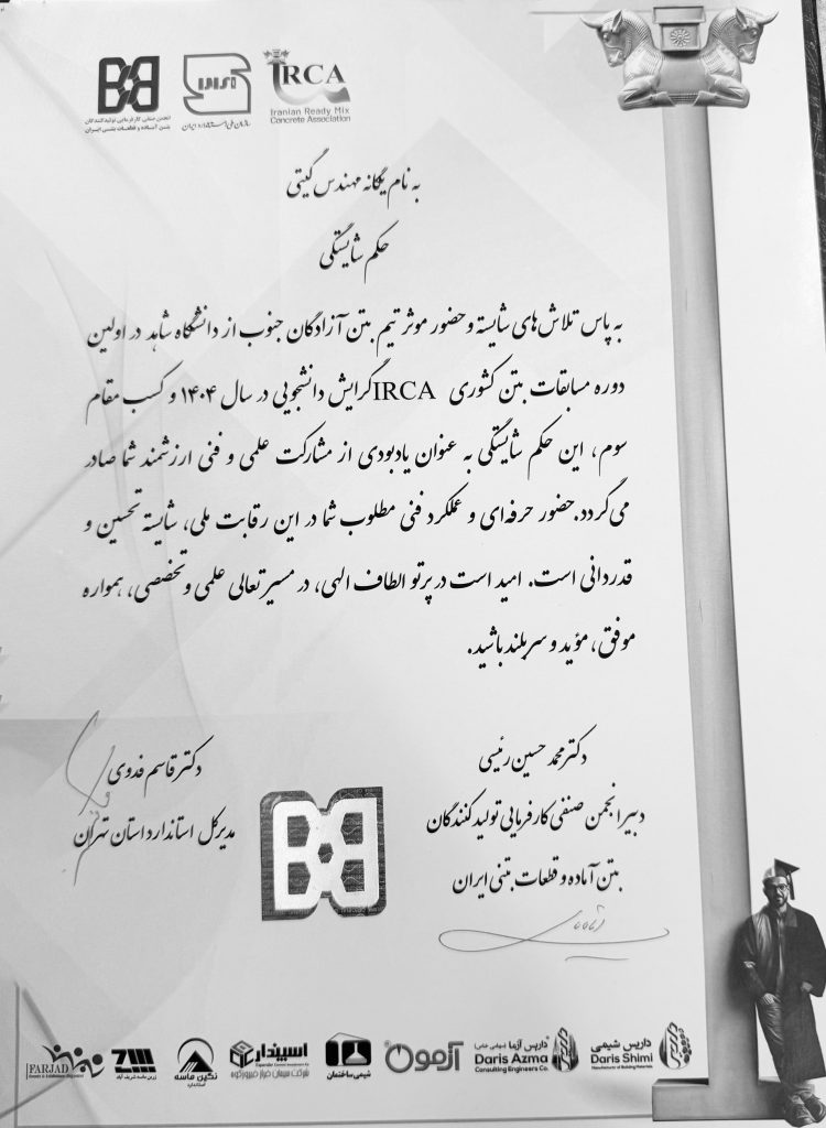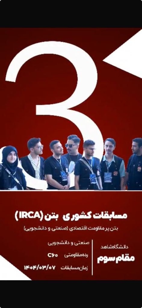 افتخارآفرینی دانشجویان گروه مهندسی عمران در مسابقات ملی بتن IRCA