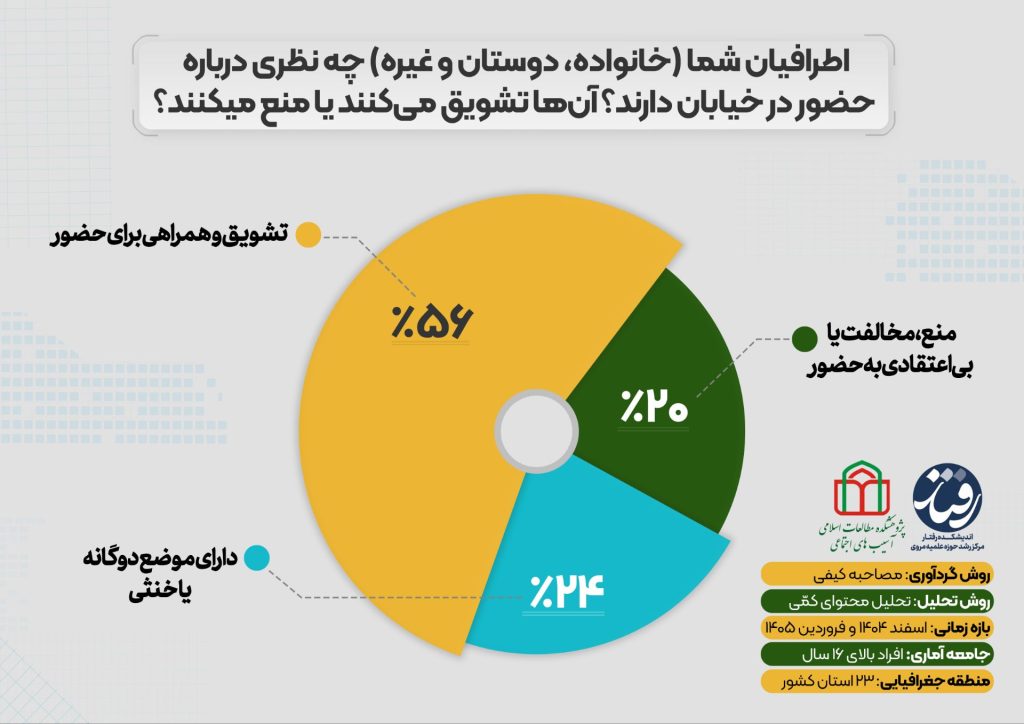 - ۲۴ درصد نیز اطرافیانی با مواضع خنثی یا دوگانه گزارش کردهاند.