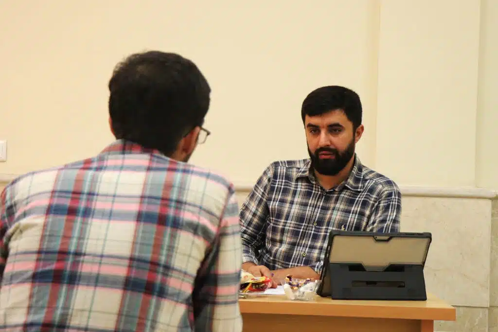 پس از انجام این مرحله، افراد جهت مصاحبه با اعضای هیأت علمی دانشگاه شاهد، و امضاء تعهد نامه در محضر مقام علمی دانشگاه شاهد به طبقه دوم مراجعه میکردند و در انتها پس از طی حدود 2 الی 3 ساعت، فرایند بررسی صلاحیت آنها به اتمام میرسید.