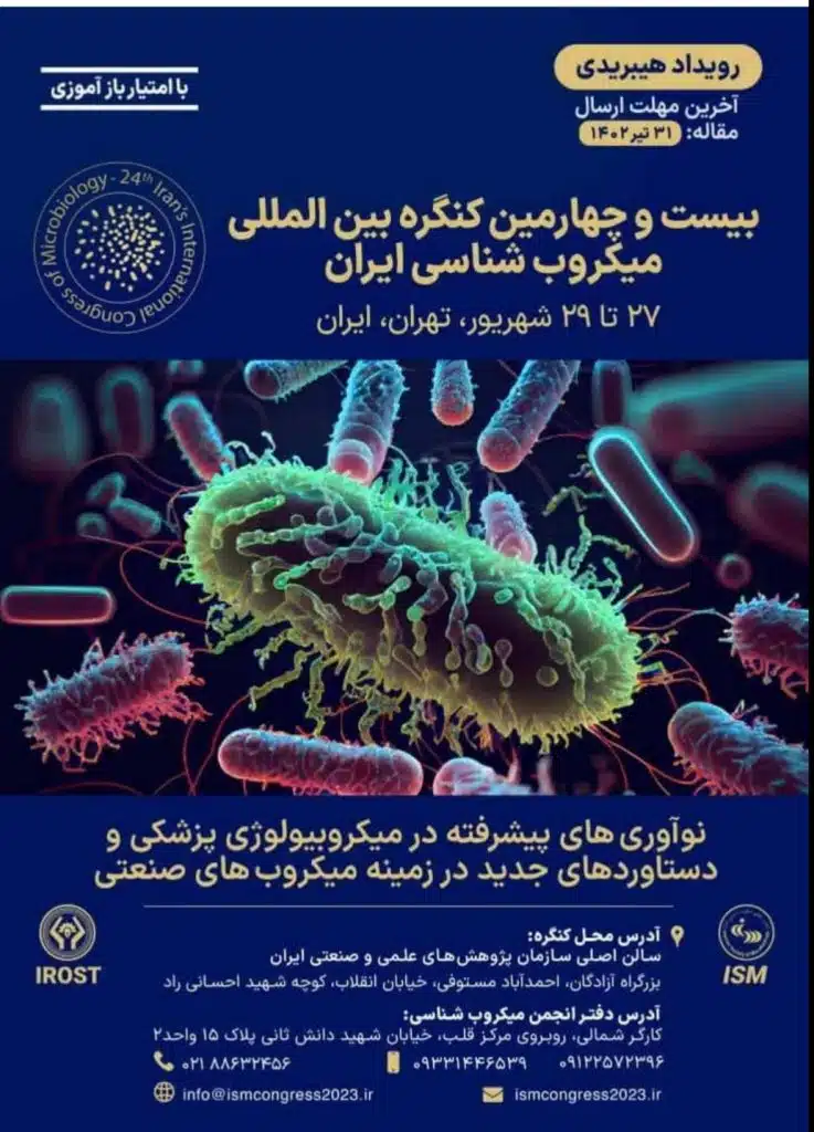 به گزارش «روابط عمومی»، بیست و چهارمین کنگره بین المللی میکروب شناسی ایران، 27 الی 29 شهریور ماه 1402 برگزار می گردد.