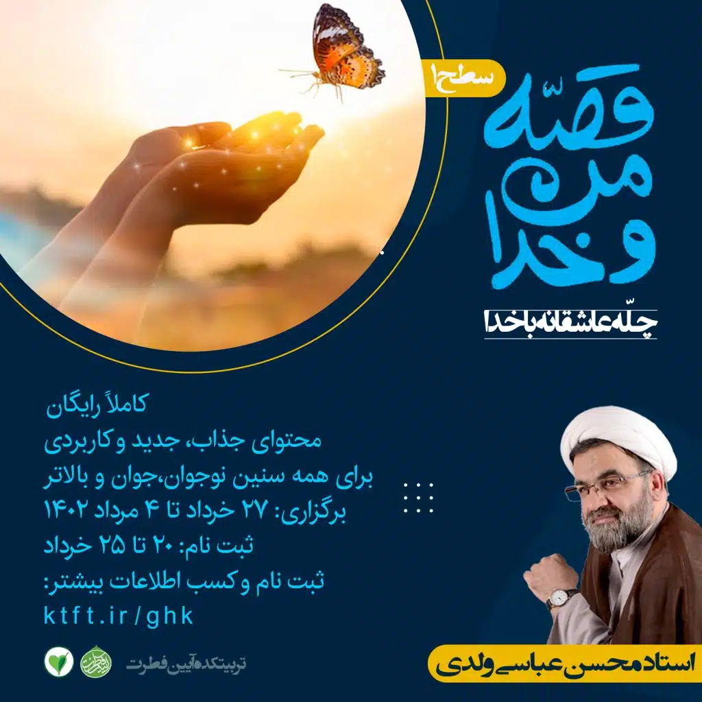 به گزارش «روابط عمومی» دانشگاه، دوره آموزشی «قصه من و خدا- سطح یک»، ویژه دانشجویان، اعضای هیات علمی و کارکنان دانشگاه و خانواده‌های معزز آنها برگزار می‌گردد.