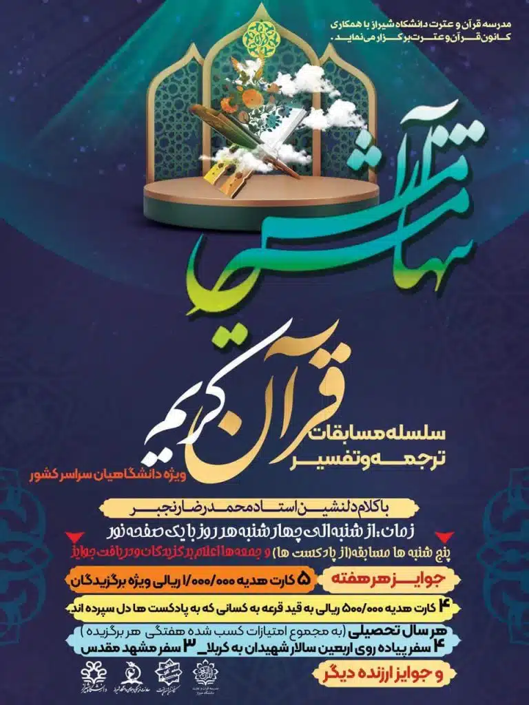 بنا بر گزارش روابط عمومی، سلسله مسابقات ترجمه و تفسیر قرآن کریم با عنوان “تنها مسیر آرامش” با هدف تبیین و اشاعه فرهگ قرآنی در جامعه دانشگاهی ویژه دانشجویان، اساتید و کارکنان دانشگاهها و موسسات آموزش عالی از سوی دانشگاه شیراز و با حمایت معاونت فرهنگی و اجتماعی وزارت علوم، تحقیقات و فناوری برگزار میگردد.