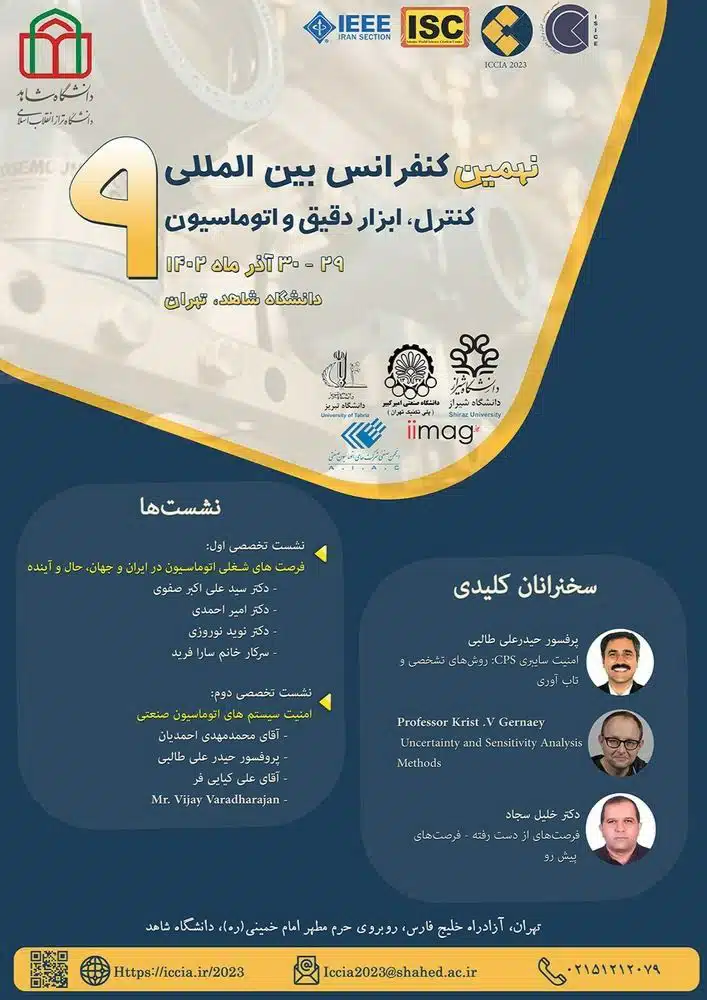 بنا بر گزارش روابط عمومی، نهمین کنفرانس بین‌المللی کنترل، ابزار دقیق و اتوماسیون، 29 و 30 آذر ماه 1402 در دانشگاه شاهد برگزار می‌گردد.