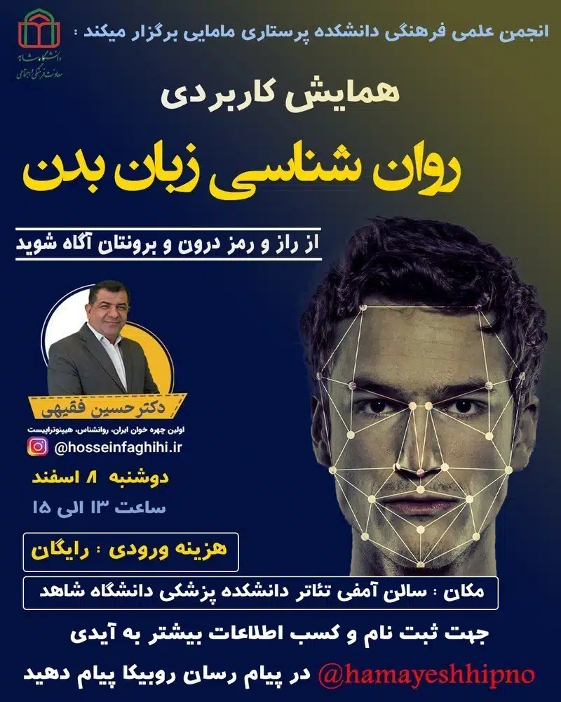 گفتنی است سخنران این همایش، دکتر حسین فقیهی اولین و برترین فیزیوگنومیست ایران، روانشناس و هیپنوتراپیست می باشد و هزینه ثبتنام در همایش برای عموم افراد رایگان است.