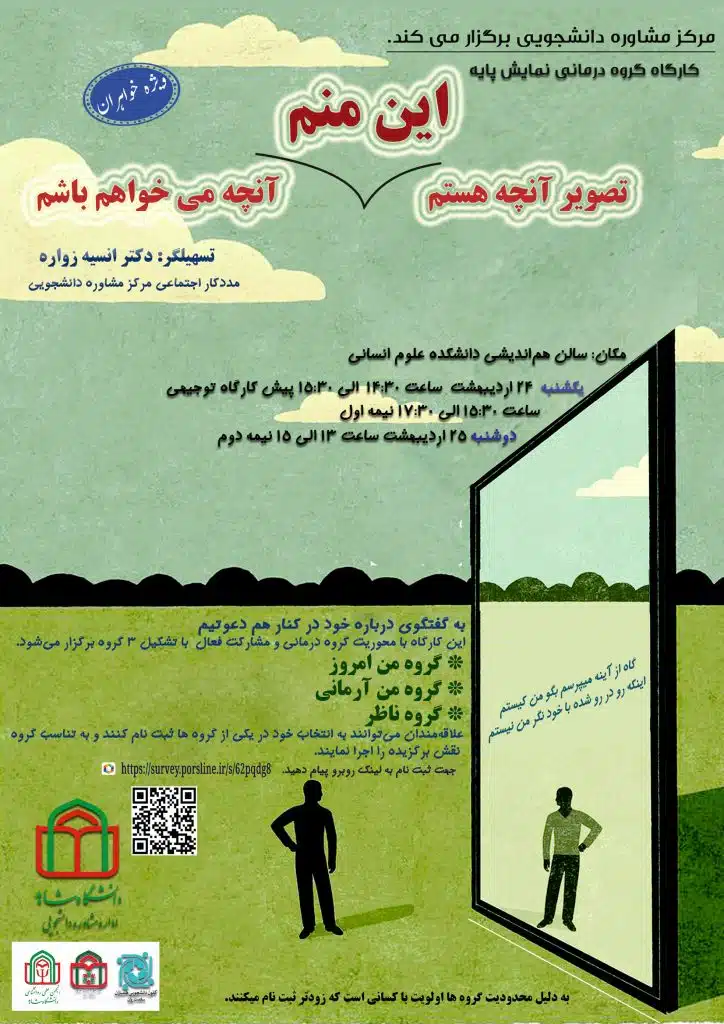 به گزارش «روابط عمومی» دانشگاه، کارگاه گروه درمانی نمایش پایه ویژه خواهران به همت مرکز مشاوره دانشجویی در روزهای 24 اردیبهشت ماه از ساعت 14:30 الی 17 و 25 اردیبهشت ماه از ساعت 13 الی 15 در محل سالن هم اندیشی دانشکده علوم انسانی برگزار میگردد.