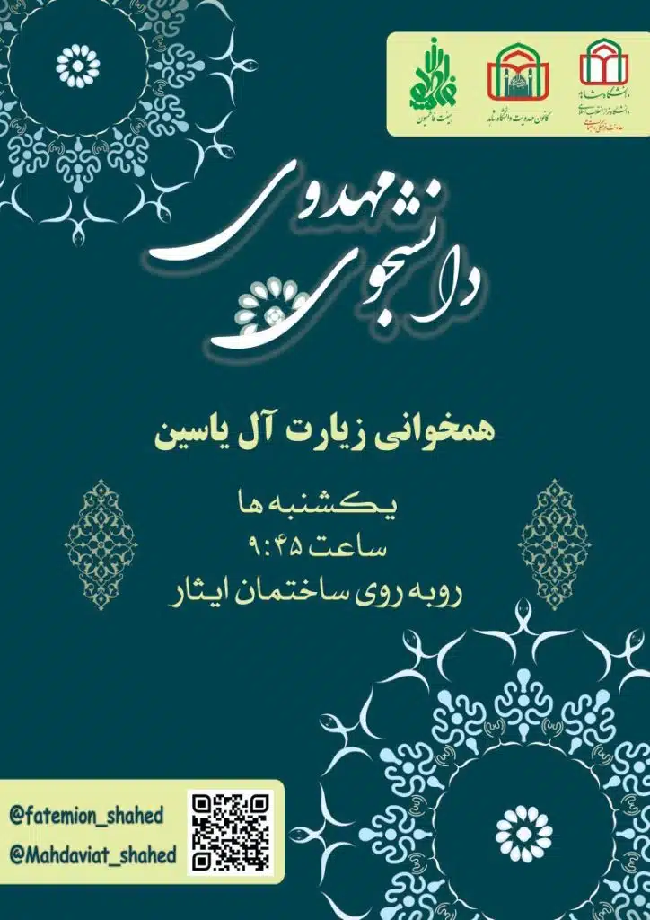 به گزارش «روابط عمومی» دانشگاه، مراسم همخوانی زیارت آل یاسین یکشنبه 24 اردیبهشت ماه 1402 ساعت 9:45 رو به روی ساختمان ایثار برگزار میگردد.
