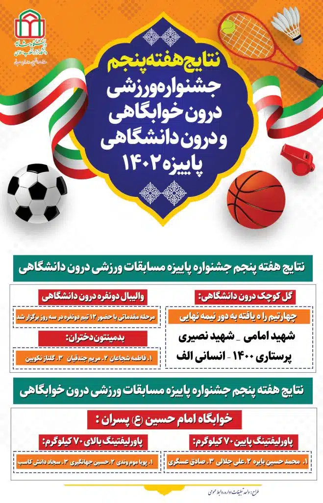 نتایج هفته پنجم جشنواره پاییزه مسابقات ورزشی درون دانشگاهی