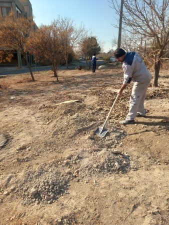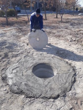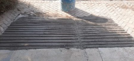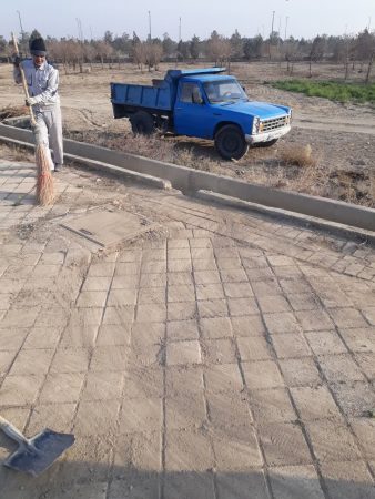 ترمیم و بهسازی سنگ فرش جای شکستگی لوله آب روبروی درب ۱