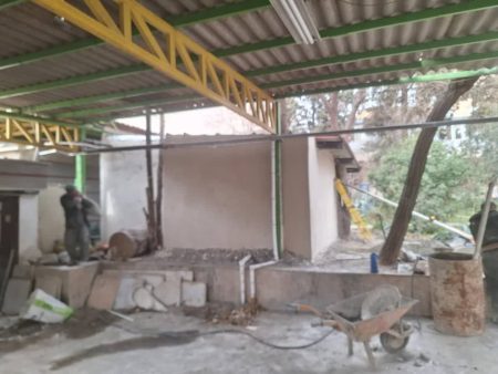 اتمام دیوارکشی و سیمانکاری و مسقف کردن اتاقک تجهیزات سیستم اطفا حریق کلینیک دندانپزشکی شهید منتظری