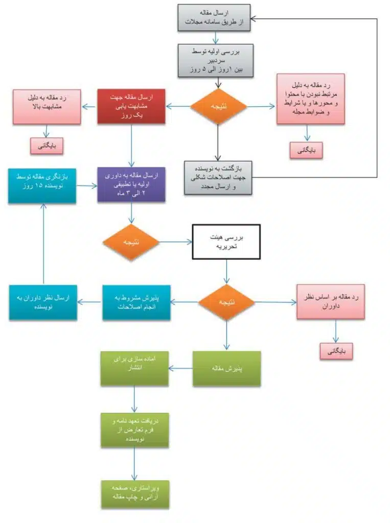 فرایند بررسی و پذیرش مقالات در مجله پژوهشنامه علم‌سنجی را می‌توان به‌صورت زیر خلاصه کرد: