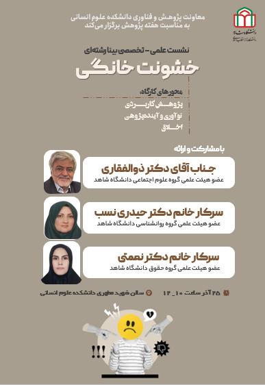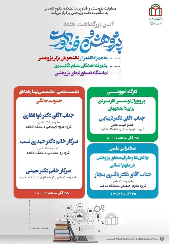 معاونت پژوهش و فناوری دانشکده علوم انسانی دانشگاه شاهد برگزار میکند