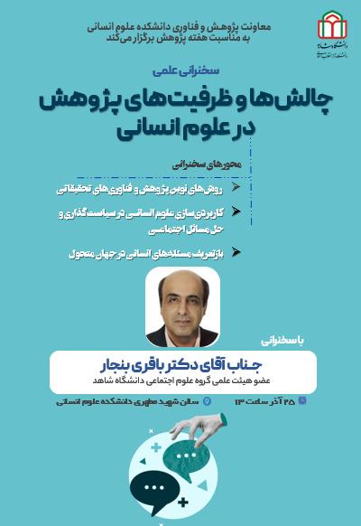 سخنرانی علمی «چالشها و ظرفیتهای پژوهش در علوم انسانی»