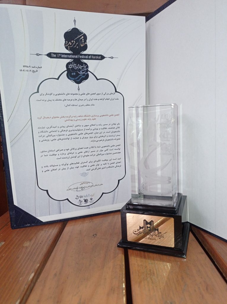 کسب مقام برگزیده توسط انجمن علمی پرستاری دانشگاه شاهد در بخش تولید محتوای دیجیتال در هجدهمین جشنواره حرکت تبریز