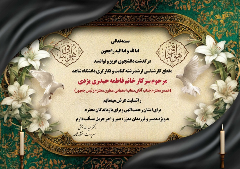پیام تسلیت سرپرست محترم دانشگاه شاهد