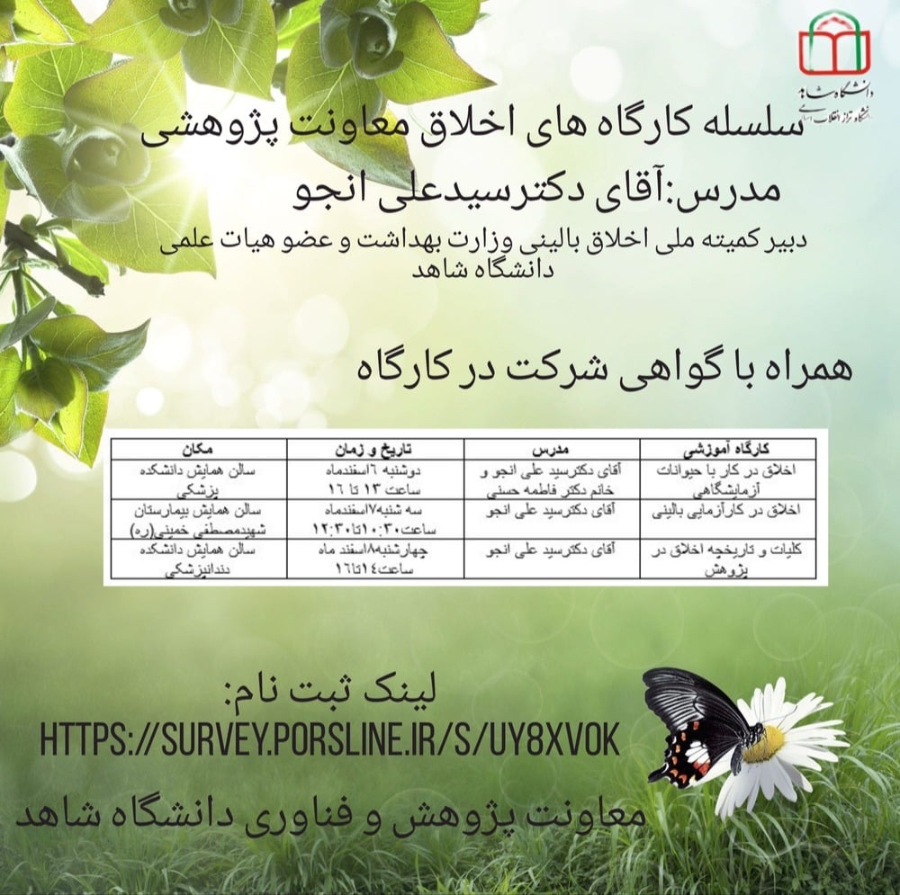 گزارش خبری: برگزاری سه کارگاه آموزشی اخلاق در پژوهش در دانشگاه شاهد