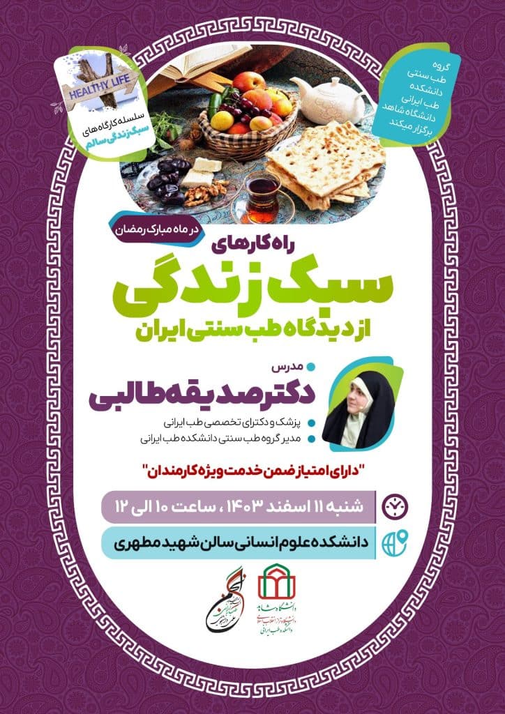 کارگاه آموزشی «راهکارهای سبک زندگی از دیدگاه طب سنتی ایران در ماه مبارک رمضان»