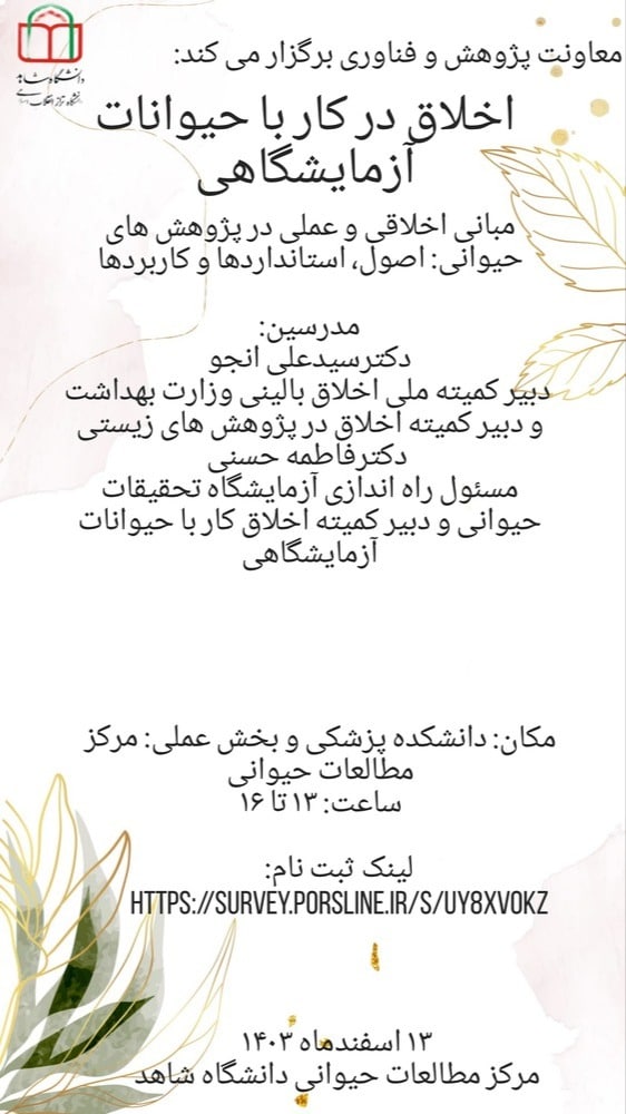 کارگاه اخلاق در کار با حیوانات آزمایشگاهی