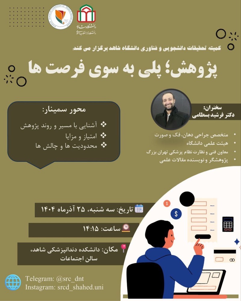 کمیته تحقیقات و فناوری دانشجویی دانشگاه شاهد برگزار میکند: سمینار «پژوهش؛ پلی به سوی فرصتها»