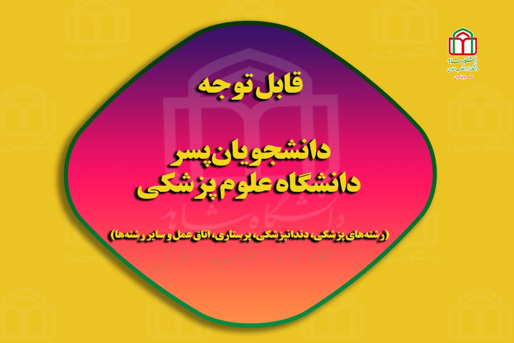 قابل توجه دانشجویان پسر دانشگاه علوم پزشکی(رشتههای پزشکی، دندانپزشکی، پرستاری، اتاق عمل و سایر رشتهها)