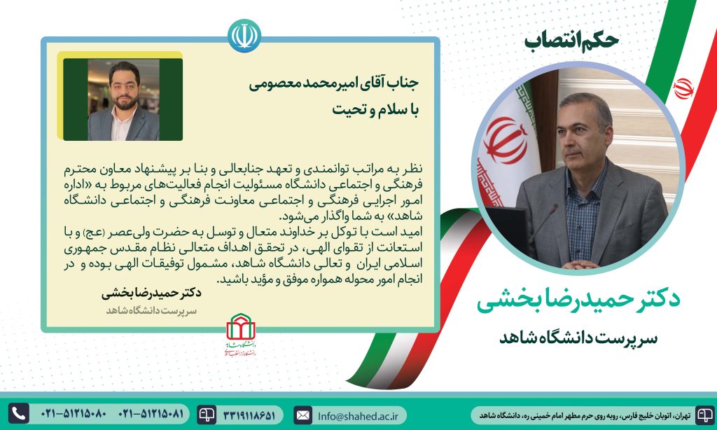 انتصاب «معاون پشتیبانی و مدیریت منابع دانشکده حکمرانی دانشگاه شاهد»
