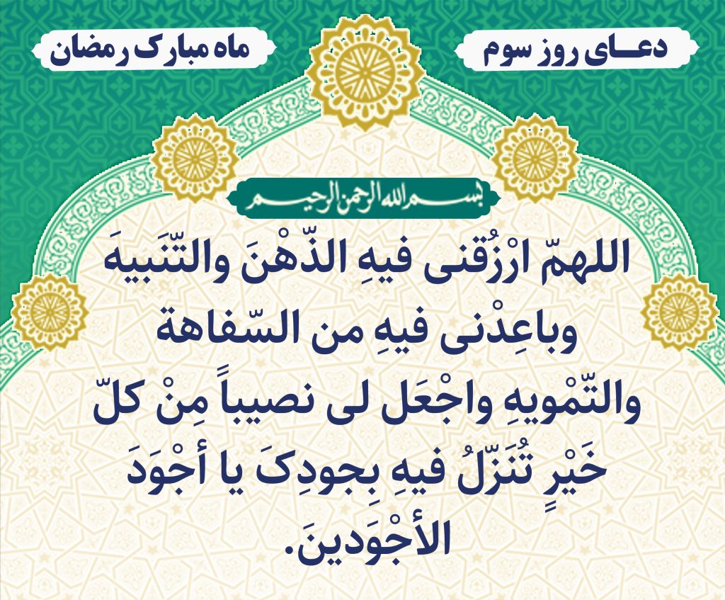 اللهمّ قَرّبْنی فیهِ الى مَرْضاتِکَ و جَنّبْنی فیهِ مِن سَخَطِکَ و نَقماتِکَ و وفّقْنی فیهِ لقراءهِ آیاتِکَ برحْمَتِکَ یا أرْحَمَ الرّاحِمین.