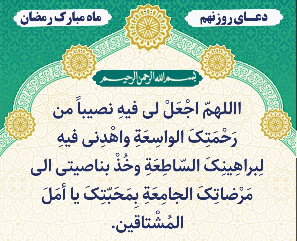 اللهمّ اجْعَلْ لی فیهِ نصیباً من رَحْمَتِکَ الواسِعَهِ واهْدِنی فیهِ لِبراهِینِکَ السّاطِعَهِ وخُذْ بناصیتی الى مَرْضاتِکَ الجامِعَهِ بِمَحَبّتِکَ یا أمَلَ المُشْتاقین.