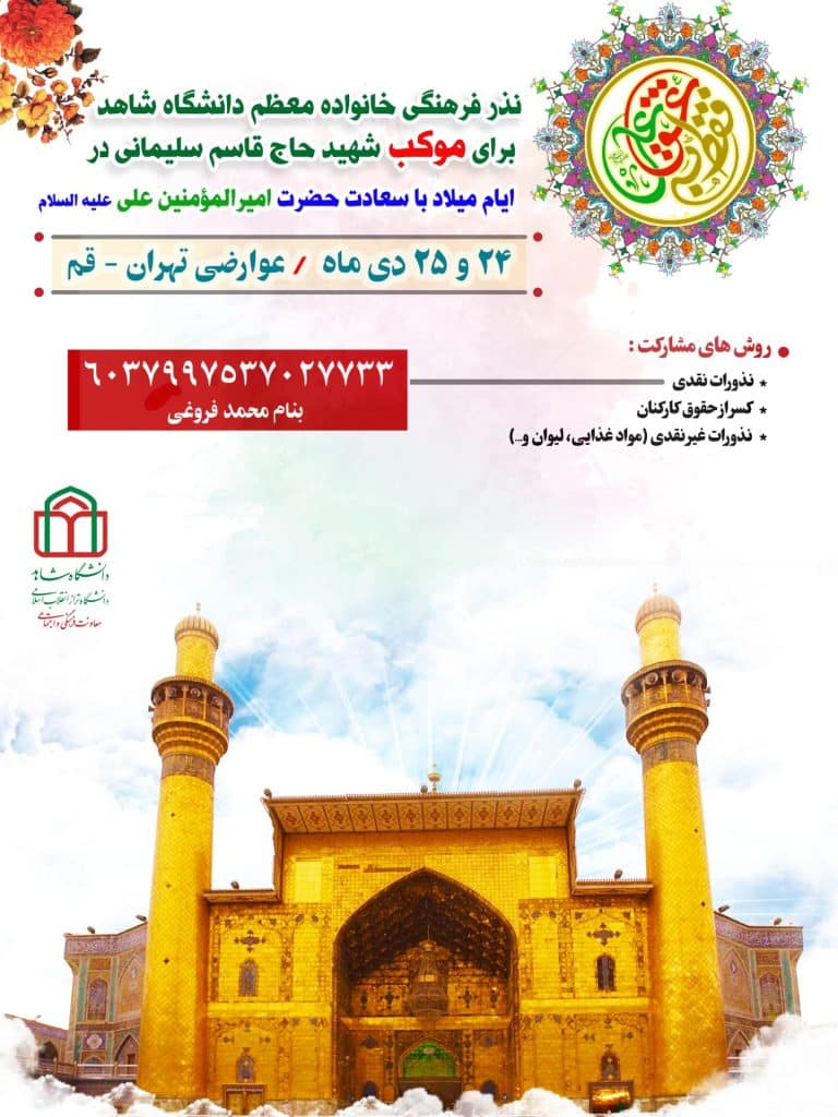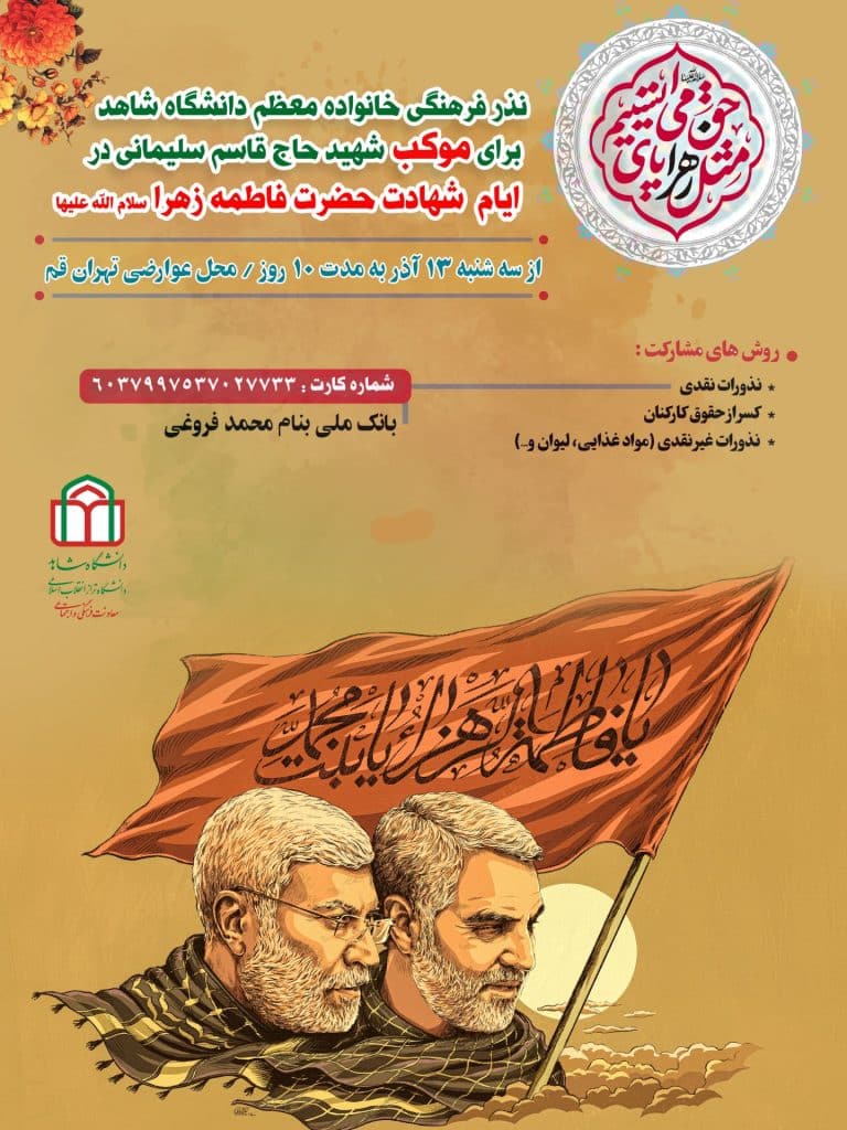 نذر فرهنگی خانواده معظم دانشگاه شاهد برای موکب شهید حاج قاسم سلیمانی در ایام شهادت حضرت فاطمه زهرا سلام الله علیها
