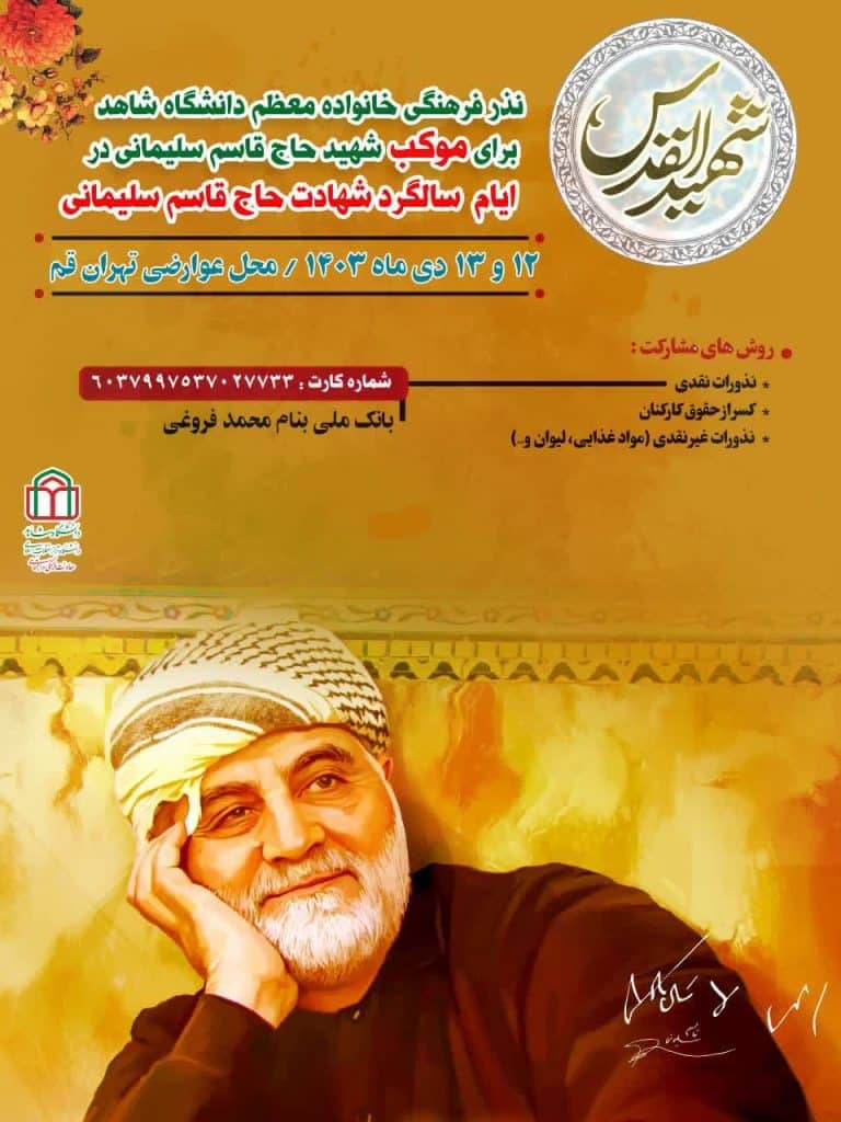 نذر فرهنگی خانواده معظم دانشگاه شاهد برای موکب شهید حاج قاسم سلیمانی در ایام سالگرد شهادت حاج قاسم سلیمانی
