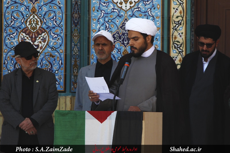 اینجانب اعلام می کنم که حاضرم درصورت اجازه مسئولین، همانند دوران دفاع مقدس، درس و مشق و کار دانشگاهیم را تعطیل نموده و کفن پوش به یاری برادرانم در غزه بشتابم. دانشگاه شاهد به عنوان دانشگاه تراز انقلاب اسلامی و جبهه مقاومت آمادگی خود را برای پذیرش و بورس دانشجویان غزه در رشته های مختلف اعلام می نماید. این کوچکترین کاری است که می توانیم برای برادران مظلوممان در فلسطین تا بازسازی دانشگاهای غزه انجام دهیم.