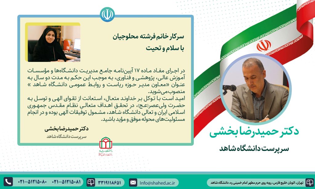 انتصاب «معاون مدیر حوزه ریاست و روابط عمومی دانشگاه شاهد»