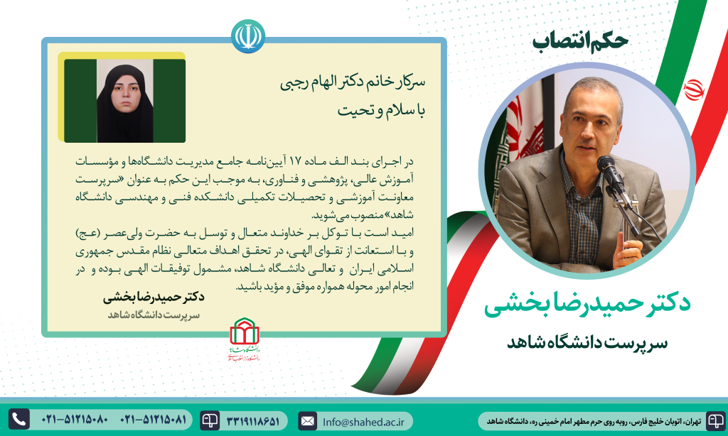انتصاب «سرپرست معاونت پشتیبانی و مدیریت منابع دانشکده فنی و مهندسی دانشگاه شاهد»