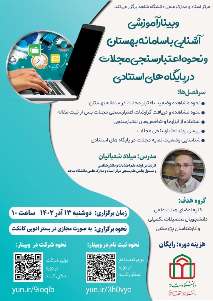 وبینار آموزشی آشنایی با سامانه بهستان و نحوه اعتبارسنجی مجلات در پایگاههای استنادی