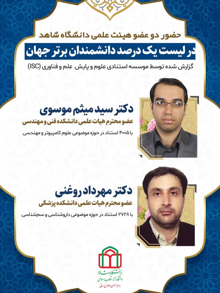 به گزارش روابط عمومی دانشگاه شاهد، مؤسسه استنادی و پایش علم و فناوری جهان اسلام (ISC)، دو پژوهشگر از پژوهشگران دانشگاه شاهد را در زمره پژوهشگران پراستناد یک درصد برتر جهان قرار داد.