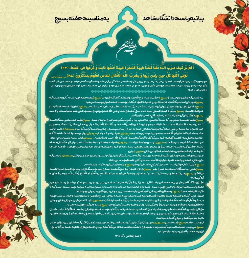 بیانیه ریاست دانشگاه شاهد به مناسبت هفته بسیج