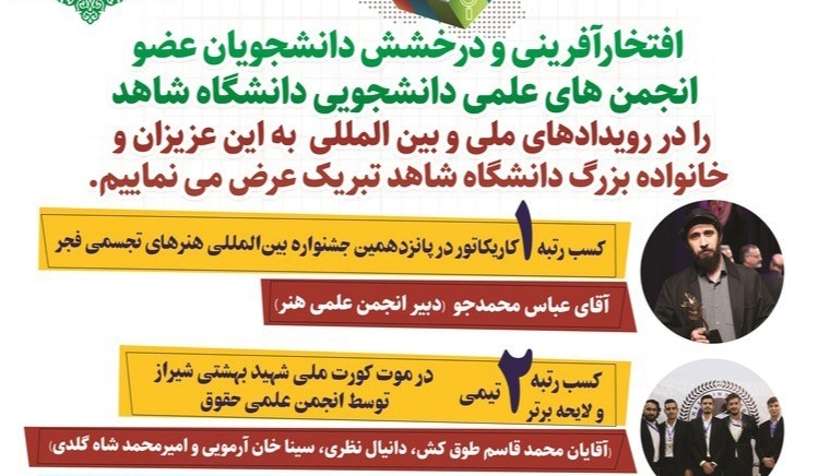 افتخارآفرینی دانشجویان عضو انجمنهای علمی دانشجویی دانشگاه در رویدادهای ملی و بین المللی