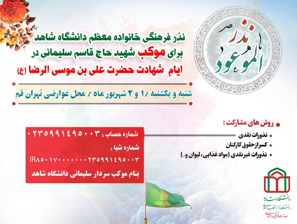 نذر فرهنگی خانواده معظم دانشگاه شاهد برای موکب شهید حاج قاسم سلیمانی