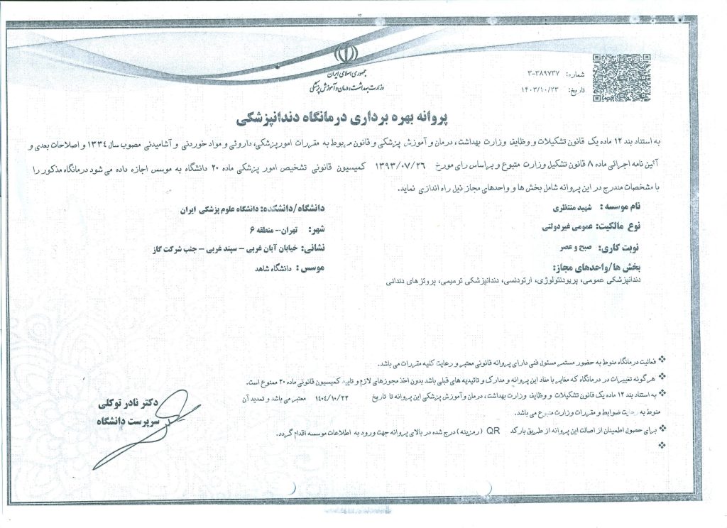 درمانگاه تخصصی دندانپزشکی شهید منتظری