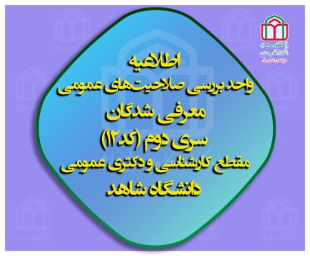 اطلاعیه واحد بررسی صلاحیت عمومی، معرفی شدگان سری دوم (کد12) مقطع کارشناسی و دکتری عمومی سال 1404 دانشگاه شاهد