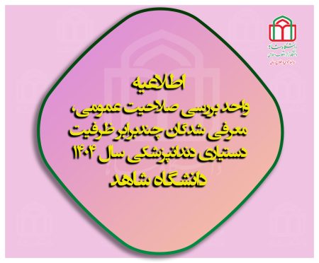 اطلاعیه واحد بررسی صلاحیت عمومی، معرفی شدگان چندبرابر ظرفیت دستیاری دندانپزشکی سال 1404 دانشگاه شاهد