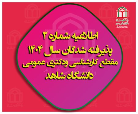 اطلاعیه شماره 2 پذیرفته شدگان سال 1404 مقطع کارشناسی ودکتری عمومی دانشگاه شاهد