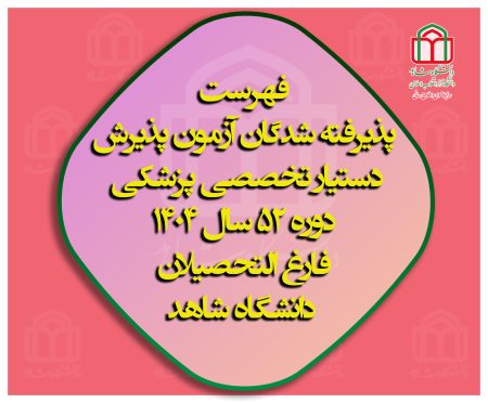 فهرست پذیرفته شدگان آزمون پذیرش دستیار تخصصی پزشکی دوره 52 سال 1404 – فارغ التحصیلان دانشگاه شاهد